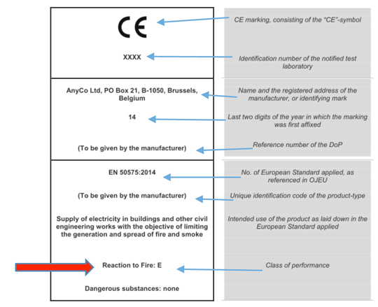 Below is an example taken out of the Regulation of a label you may see (although this is an example and may vary slightly), the class of performance is the key. This label would be applied to a Class Eca cable.